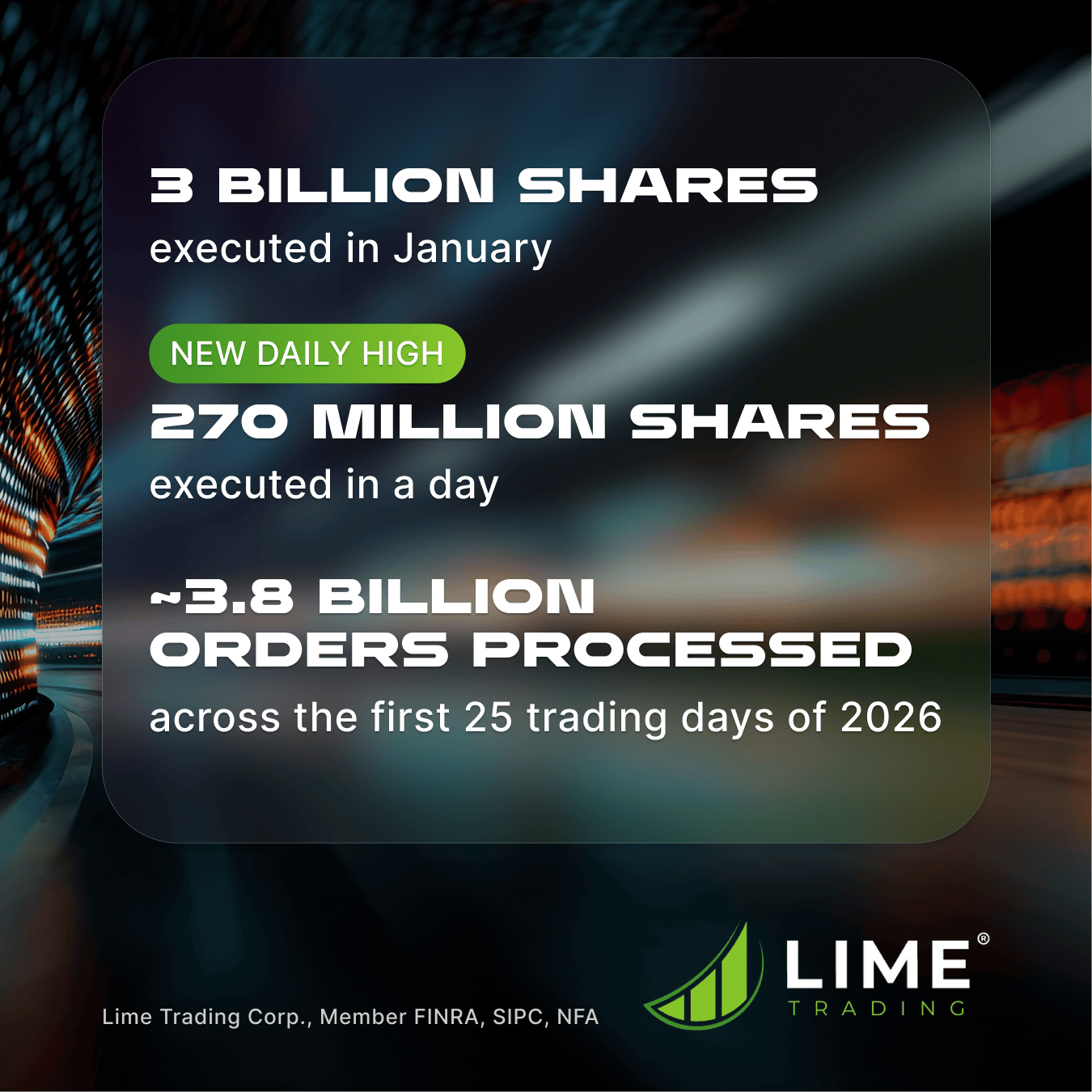 All figures are based on Lime Trading internal systems and reporting data for the periods referenced above.