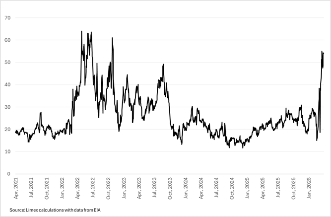 The last time the market faced a comparable supply-driven shock was in 2022, in the aftermath of post-COVID dislocations and restrictions on Russian energy flows into Europe.